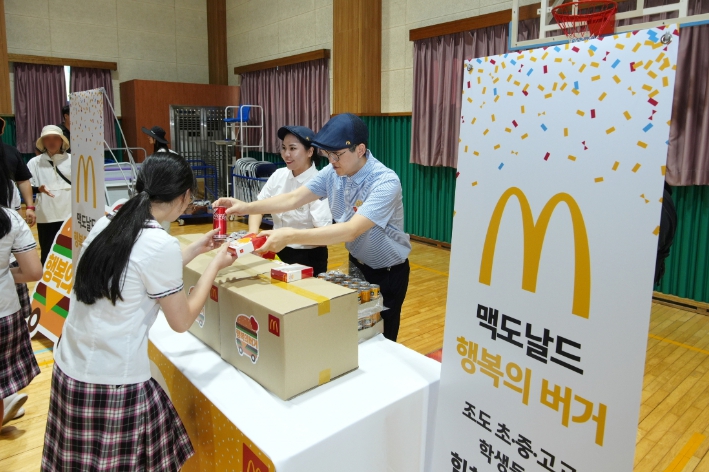조도에는 맥도날드 매장이 없어 배편을 통해서만 갈 수 있는 조도까지 맥도날드가 직접 배달에 나섰고, 2학기 개학일에 진행된 이번 행사에는 조도 초등학교 학생뿐만 아니라 인근에 조도 중학교, 조도 고등학교 학생들도 함께했다.