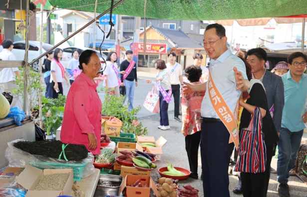 | 명현관 군수 9일 우수영 오일장 찾아 전통시장 장보기 및 물가안정 캠페인 |