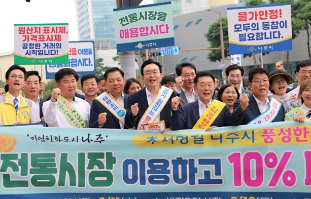 한편 윤병태 나주시장은 지난 3일 빛가람동 한전KDN사거리에서 공공기관, 상인회, 소비자단체, 공무원 등과 함께한 ‘지역상품 판매 촉진 캠페인’을 가졌다.