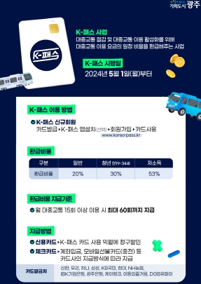 K-패스를 발급?등록한 광주시민은 올해는 정부의 K-패스 지원율에 따른 혜택을 받고, 내년부터 광주G-패스가 시행되면 별도의 절차 없이 자동으로 광주시가 지원하는 추가 혜택을 받는다.