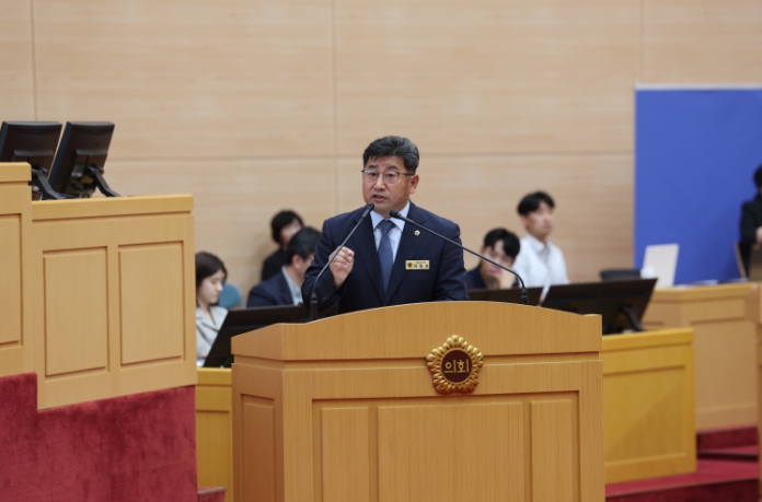 | 최정훈 전남도의원이 제384회 임시회 제4차 본회의에서 도정질문을 하고 있다. |