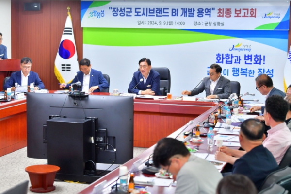 김한종 장성군수, 심민섭 장성군의회 의장, 지역 언론인, 공무원 등 30여 명이 참여한 가운데 열린 이날 보고회는 새롭게 확정된 도시 브랜드 최종안 및 응용안 발표와 개발 과정 소개, 질의 응답 순으로 이어졌다.
