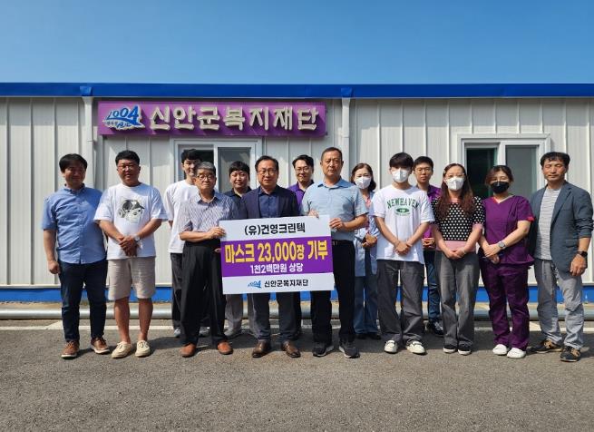 | 신안군복지재단, (주)건영크린텍 감염병 예방 방역물품 지원 |
