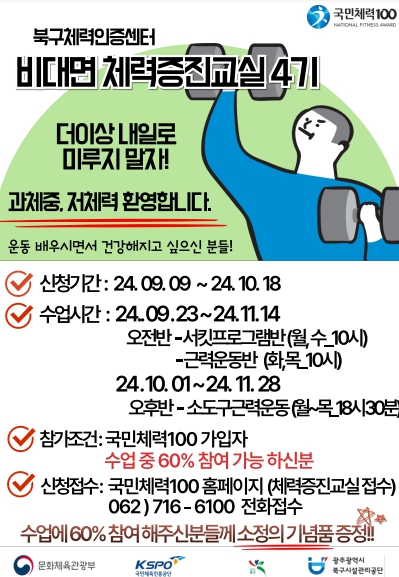 | 국민체력100 북구(광주광역시)체력인증센터, 제4기 비대면 체력증진교실 참여자 모집 |