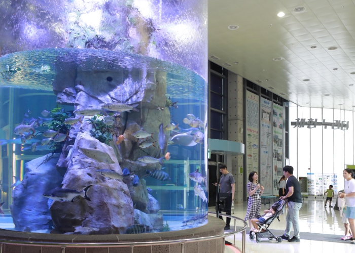 물고기 먹이주기, 닥터피쉬, 그림 그리기 등 콘텐츠를 즐길 수 있는 체험 수족관을 운영하고 있다. 최근 멸종위기 바다거북과 아기 가오리 특별전시를 통해 색다른 경험을 선보이고 있다.