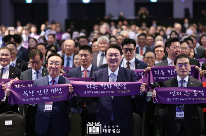 | 9월 10일 윤석열 대통령은 서울 그랜드 워커힐 호텔에서 개최된 민주평화통일자문회의(이하 민주평통) 해외지역회의(미주)에 참석해 ?미주지역 자문위원과의 통일대화?를 함께했다. |