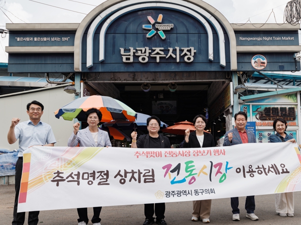 동구의회는 유례없는 폭염과 온라인 시장 확산 등으로 침체된 전통시장을 찾아 매출 증대와 지역경제 활성화를 위해 남광주 시장과 산수 시장 등 관내 전통시장에서 장보기 행사를 진행했다.