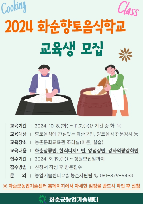 | 화순향토음식학교 교육생 모집 |