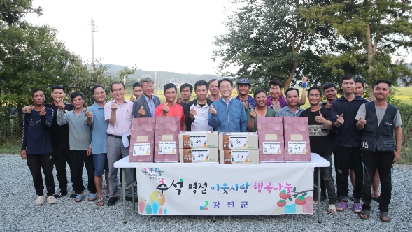 | 강진원 강진군수가 12일 베트남 계절근로자들을 위문, 격려하고 있다. |