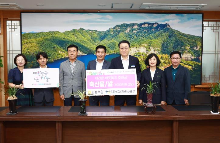 화순축협은 매년 (사)나눔축산운동본부와 함께 돼지갈비, 삼계탕, 양념육 등으로 화순군의 저소득 가구를 위해 기부를 실천하고 있다.
