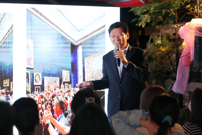 이 시장은 이날 용인특례시가 청년들을 위해 마련한 ‘Art니까 청춘이다’ 프로그램에 ‘도슨트’로 깜짝 등장해 ’꿈꾸고 상상하고 도전하면 창조한다‘라는 주제로 강의했다.