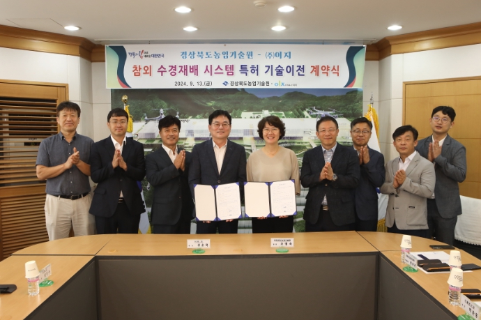 이날 기술이전한 특허기술은 △참외재배에 적합한 전용배지 △뿌리 근처의 압력을 측정해 자동으로 정밀하게 양액을 공급할 수 있는 수분 감응형 양액기를 활용한 참외재배 패키지 기술이다.