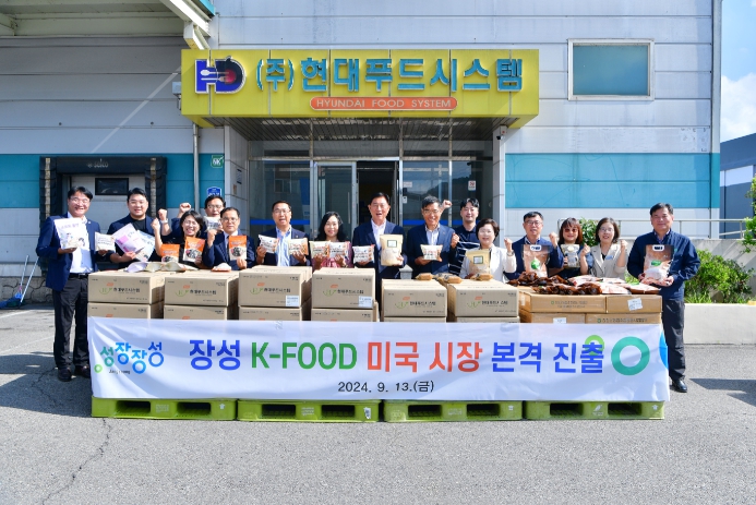 군은 13일 장성군 소재 ㈜현대푸드시스템에서 미국 수출 선적식을 가졌다. 김한종 장성군수, 박현숙 전남도의회 의원, 신현곤 전라남도 국제협력관, 나문선 농협중앙회 장성군지부장, 수출업체 관계자 등 다수가 참석해 ‘K-푸드’ 해외시장 진출을 기념했다.