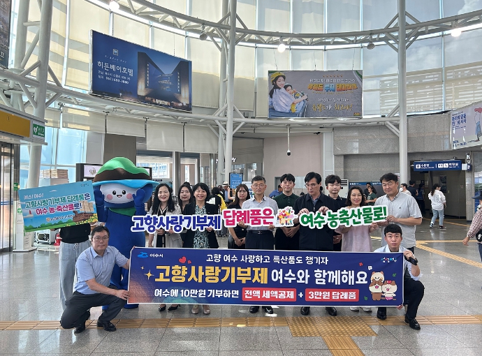 | 여수시(시장 정기명)는 지난 13일 추석을 앞두고 여천역과 여수엑스포역에서 ‘고향사랑기부제 참여 캠페인’을 실시했다. |