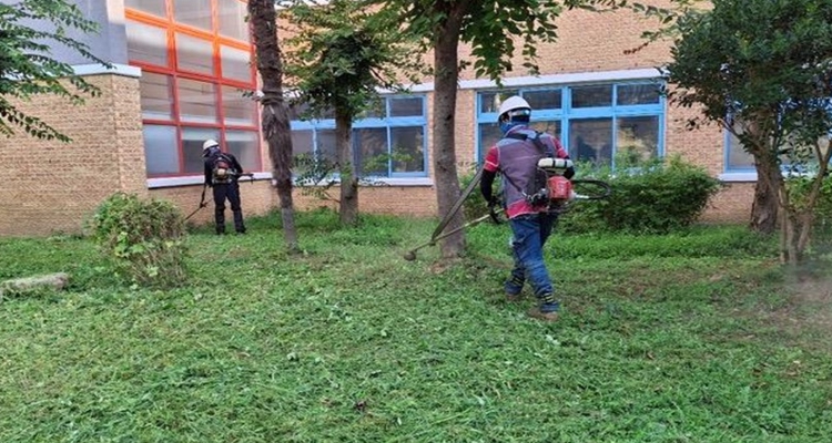 | 학교 예초 작업을 진행 중인 작업자들 |