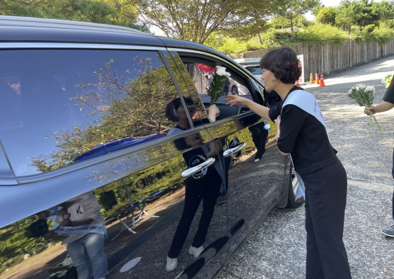 광주시는 영락공원을 찾은 성묘객들에게 2000송이의 생화를 나눠주며 친환경 추모문화 조성에 동참해 줄 것을 당부했다.