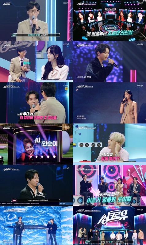 KBS 2TV '싱크로유'(연출 권재오)는 AI가 만들어낸 싱크로율 99%의 무대 속에서 목소리가 곧 명함인 최정상 아티스트들이 직접 선보이는 환상의 커버 무대를 찾아내는 버라이어티 뮤직쇼.
