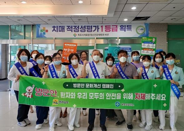 목포시는 지난 12일 부부요양병원, 한사랑병원, 목포시의료원과 함께 올바른 병문안 문화 조성을 통해 환자와 병문안객 간 감염의 위험을 줄여 환자가 안전하게 진료받을 수 있는 환경을 조성하기 위한 합동 캠페인을 펼쳤다.