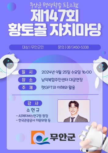 | 무안군, 소현규 AI메타버스연구원장 초청 ‘제147회 황토골 자치마당’개최 |