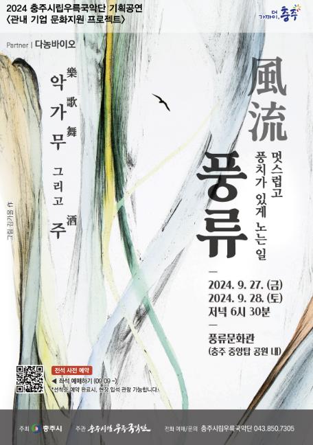 충주시립우륵국악단의 ‘풍류(風流)’는 전석 사전 예매로 진행되며, 예매는 선착순으로 좌석이 배정된다.