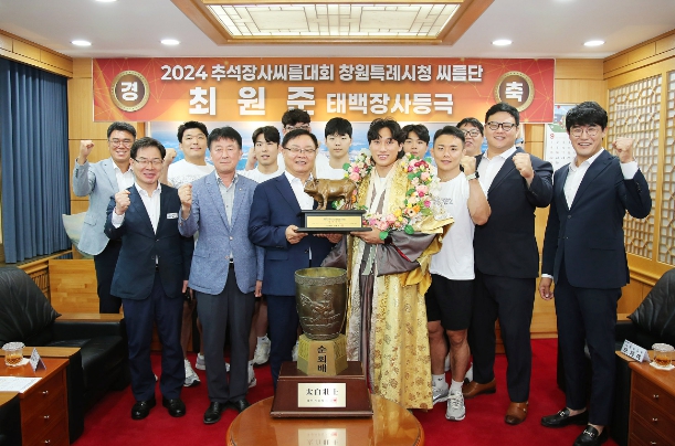 홍남표 시장은 씨름의 본고장인 창원특례시의 자존심을 살린 최원준 선수와 이번 대회를 위해 노력한 모제욱 감독을 비롯 선수단 전원에게도 격려와 감사의 마음을 전했다.