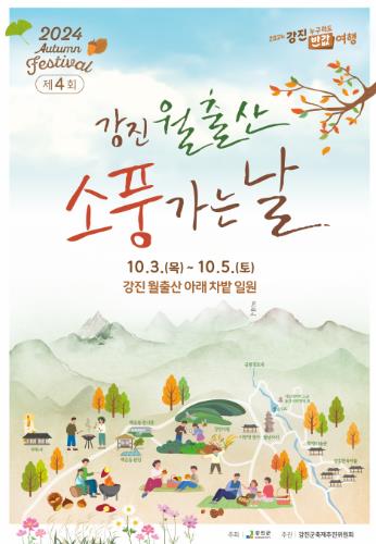 강진군 관계자는 “제4회 강진 월출산 소풍가는 날 행사야말로, 천혜의 자연경관이 가득한 월출산 권역에서 다양한 프로그램들과 혜택이 가득한 행사를 즐길 수 있는 절호의 기회”라면서 “가을의 정취가 가득한 강진 월출산에서 잊지 못할 추억을 안고 가길 바란다”고 말했다.