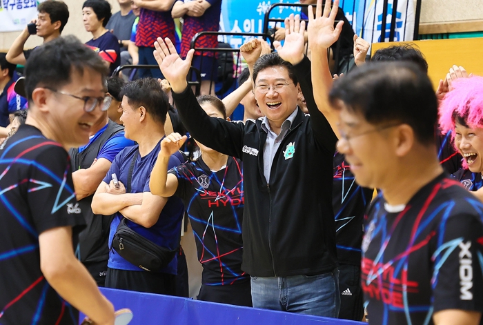 | 이상일 용인특례시장이 9월 20일 열린 '제22회 경기도 공무원 친선 체육대회' 탁구 경기장에서 공직자들을 응원하고 있는 모습. |