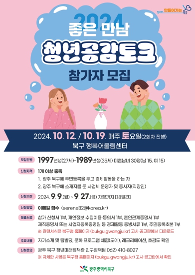 | 광주광역시 북구, 청춘남녀 소통의 장 ‘좋은 만남 청년 공감 토크’ 참가자 모집 |