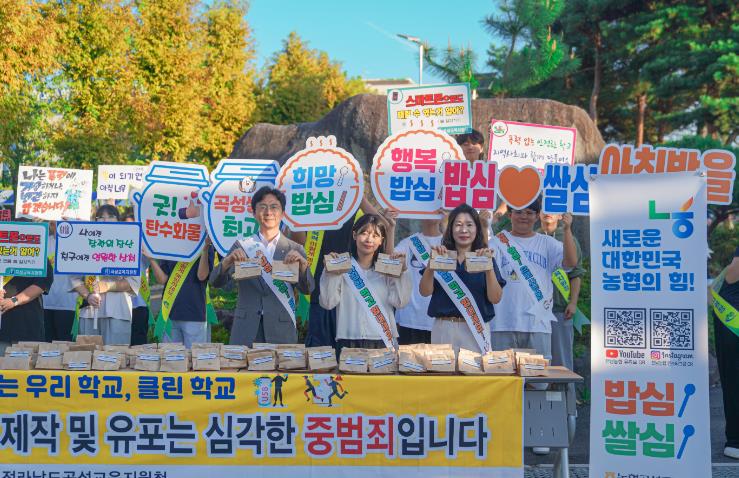 캠페인에는 방현용지부장, 곡성교육지원청 홍성수 교육지원과장, 곡성 경찰서와 함께 전남조리과학고 학생 및 교사 200여명 대상으로 건강한 식습관 형성을 위해 ‘아침밥 먹기 캠페인’과 딥페이크 없는 클린학교를 위한 ‘학교폭력 예방 캠페인’을 실시 했다.