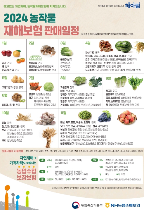 보험에 가입할 수 있는 품목을 재배하더라도 품목별 파종 또는 수확시기에 따라 가입 시기가 다른 만큼 재배작물의 가입 시기를 꼭 확인해야 한다.