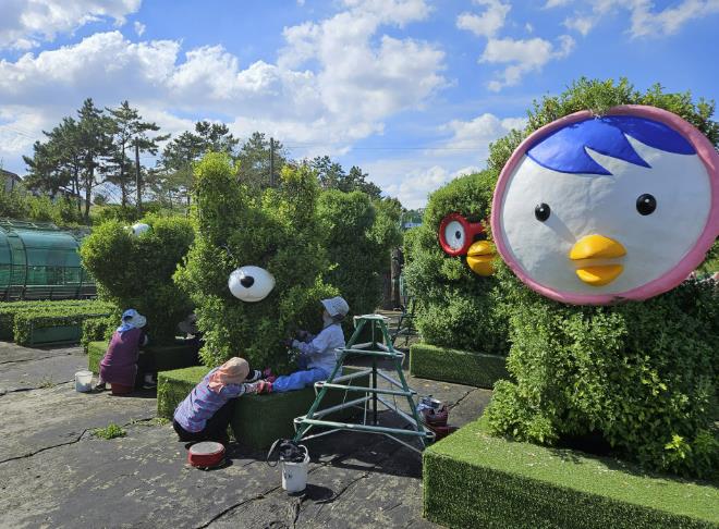 | 농업기술센터 국화조형물 유인 및 전시 작업준비 |