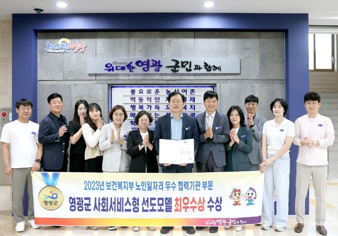 특히 영광군은 2023년 노인일자리 사회서비스형 선도모델 사업을 발굴하고, 수행기관과의 유기적 연대 및 한국노인인력개발원과의 적극적 소통행정을 통해 사업을 성공적으로 진행한 점에서 높은 평가를 받았다.