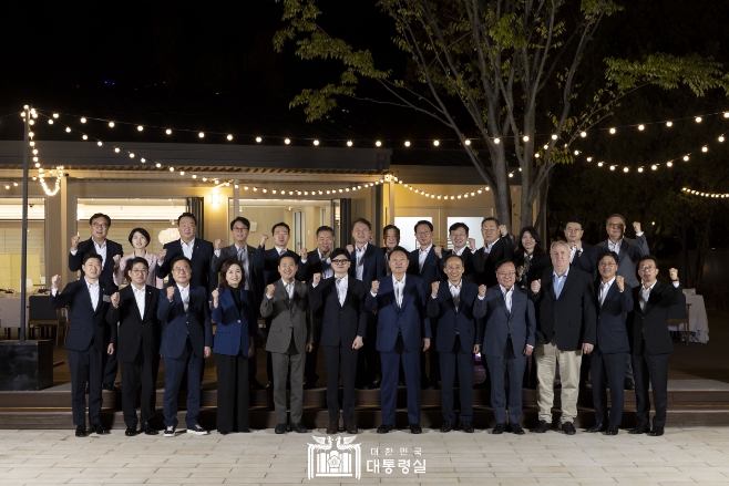 오늘의 만찬은 화기애애한 분위기 속에서 1시간 반 동안 진행됐다. 만찬을 마친 후 대통령과 참석자들은 분수공원에서 다 같이 ‘국민을 위하여!’라는 구호와 함께 박수를 치며 사진 촬영을 했다.