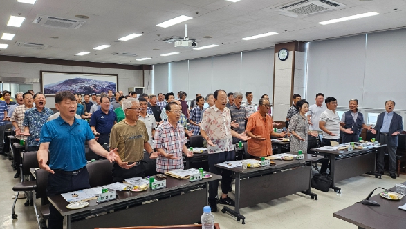 | 보성군, 이장 대상 스피치 교육 및 방송 장비 사용법 교육 실시 _ 이장님들이 정확한 발음과 발성 연습을 실시하고 있다. |