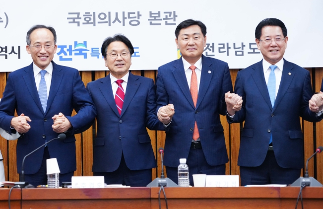 이날 회의에는 강기정 광주광역시장을 비롯해 김영록 전남도지사, 김관영 전북도지사가 참석했다. 국민의힘에서는 추경호 원내대표, 구자근 예결위간사, 조지연 원내대변인 등 중앙당 지도부와 김정현 광주시당 위원장, 김화진 전남도당 위원장, 조배숙 전북도당 위원장 등이 자리를 함께 했다.