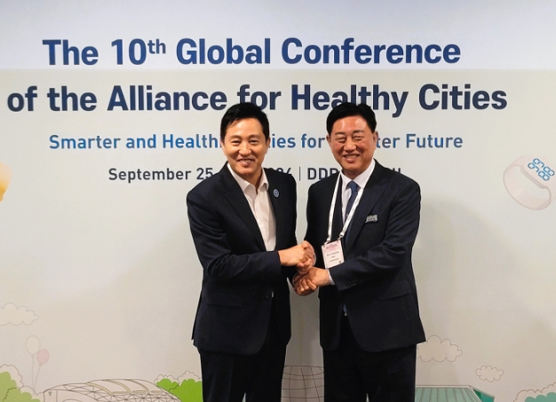 | 김한종 장성군수(우)가 25일 오세훈 서울시장을 만나 도농 교류 방안을 논의했다. |