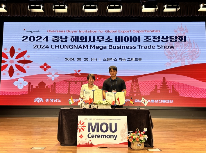 도에 따르면 지난 25일 덕산 스플라스 리솜에서 진행된 ‘2024 충남도 해외사무소 초청 바이어 수출상담회’에서 수출협약 6121만 달러를 비롯해 7362만 달러의 수출상담이 이뤄졌다.