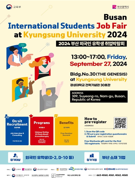 이번 박람회는 외국인 유학생과 기업의 구인·구직 연결을 강화해 외국인 유학생들이 지역 내 기업에 취업하고 정착할 수 있도록 돕기 위해 마련됐다. 전북(전북대학교), 경북(경일대학교), 전남(전남대학교)에 이어 네 번째로 부산에서 열린다.