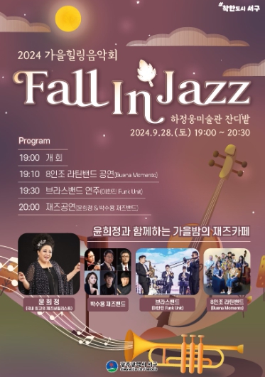 김이강 서구청장은 “기나긴 폭염으로 지치고 힘들었던 주민들이 선선한 가을바람을 느끼며 낭만 넘치는 재즈 선율로 위로와 힐링을 받을 수 있도록 이번 행사를 마련했다”며 “가족들과 가을밤의 정취를 만끽하는 시간이 되길 소망한다”고 말했다.
