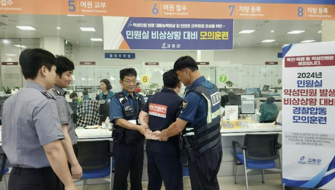 군 관계자는 “민원인의 폭언·폭행으로 민원 담당 공무원이 직무 스트레스와 위험에 자주 노출되고 있다”며, “이번 훈련을 통해 민원인과 공무원 모두가 안전한 민원실 환경을 조성하고, 품격 높은 민원 서비스를 제공할 수 있도록 최선을 다하겠다”고 말했다.