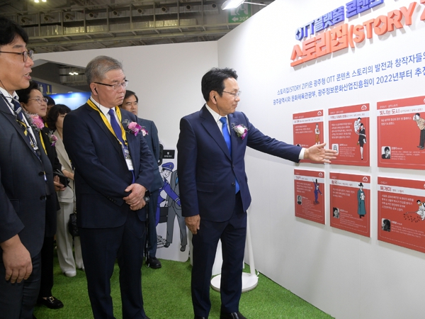 개막식 이후 강 시장과 참석자들은 광주를 대표하는 콘텐츠 기업이 참여한 광주콘텐츠코리아랩과 대만TMPA(영상음악프로그램제작협회), MOS사 공동관, GIST 한국문화기술연구소 부스, ‘눙눙이’ 등 MZ세대에 큰 반향을 일으키고 있는 초청 작가들의 작품과 굿즈를 만나볼 수 있는 일러스트레이션관 등을 방문해 K-콘텐츠 산업의 트렌드를 파악하고 콘텐츠 산업 지원에 대한 의견을 공유했다.