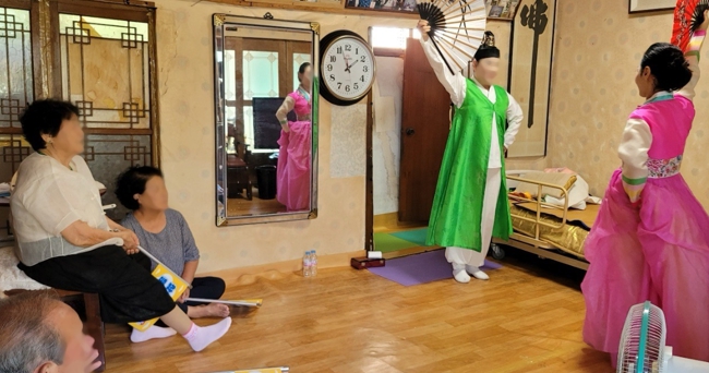 프로그램은 1인 가구 대상자의 집에 지역 예술가들이 직접 방문해 전통무용, 트로트 보컬 등 소공연을 선보이며 함께 담소를 나누는 형식으로 진행 중이다.