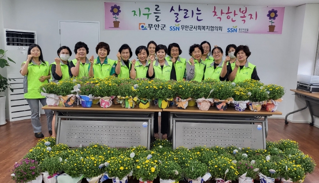 | 무안군 사회복지협의회(회장 나민희)는 지난 24일 자원봉사자들과 함께 폐현수막을 활용하여 반려 화분을 만드는 ‘지구를 살리는 착한 복지’ 사업을 진행했다. |