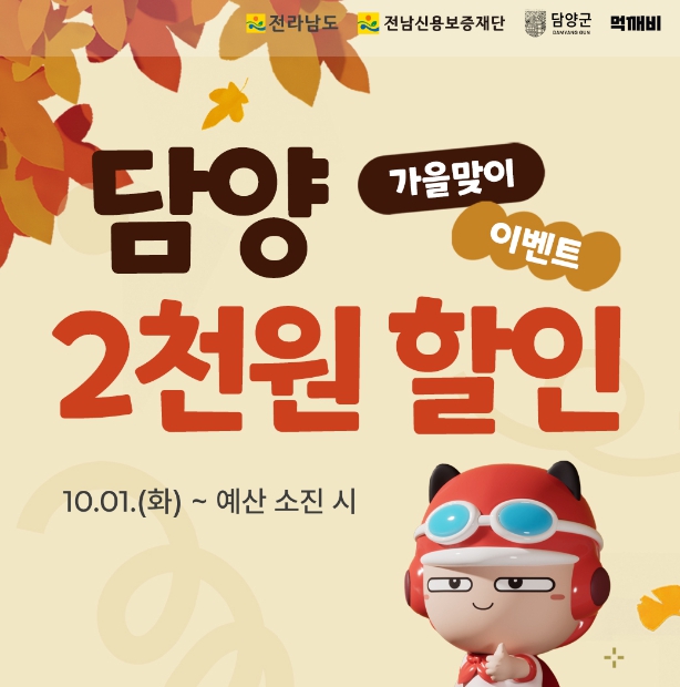 | 담양군, 공공 배달앱 ‘먹깨비’ 황금연휴·가을맞이 특별할인 행사 |