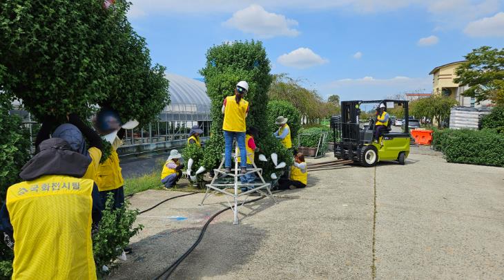 먼저, 지역 화훼 재배 농가들은 축제장 조성에 활용되는 국화 화분을 영암군농업기술센터와 계약 재배해 1년간 정성 들여 키운다.
