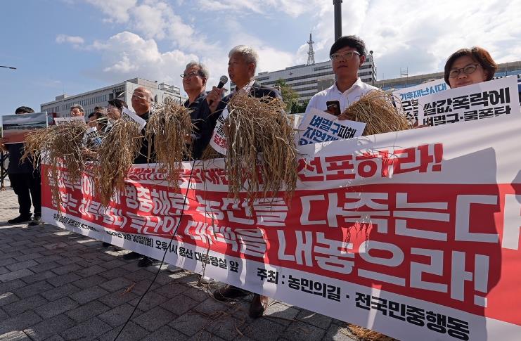 또한, “정부가 발표한 대책은 겨우 피해벼 전량수매인데 이것은 피해가 발생할 때마다 시행한 대책으로 사실상 저가로 매입하여 농민들에게 도움을 주기보다는 염장만 지른 꼴이다”며 “정부가 재해로 인정하고 농민들에 대한 실질적 대책을 세워야 한다”고 주장했다.