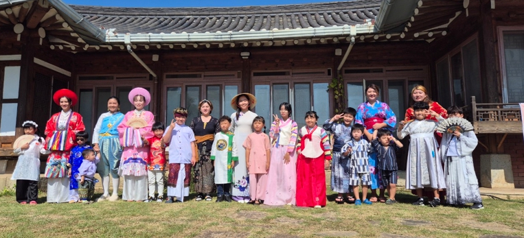 | 강진군가족센터에서 지난 28일 열린 다문화가족 어울림 나눔 행사 중 다문화 의상 패션쇼 후 기념 촬영을 하고 있다. |