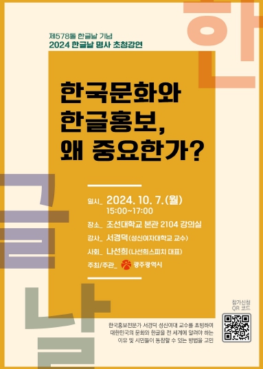 | 광주광역시, 제578돌 한글날 명사 초청강연 개최 |