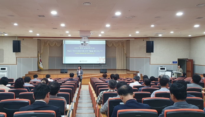 | 지난달 27일 전라남도교육청교육연구정보원에서 2022 개정교육과정 운영 지원을 위한 고등학교 학교장 연수가 진행되고 있다 |
