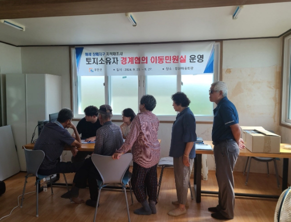 | 해제 창매지구에서 진행된 토지소유자 경계협의 이동민원실 |